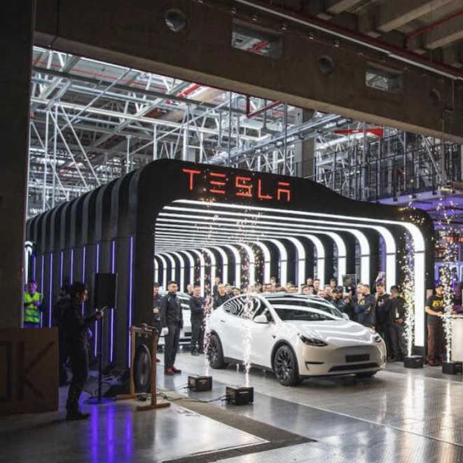اعتمد مصنع تسلا الألماني أيضًا تقنية صب مبتكرة ، حيث ألقي الإطارات الأمامية والخلفية للمعتاد في وحدة واحدة ، مما يحسن قوة واستقرار السيارة؟ أشار Musk مرة واحدة إلى هذه التكنولوجيا كثورة في صناعة تصنيع السيارات.